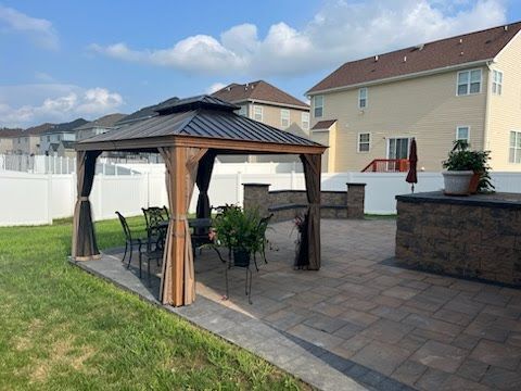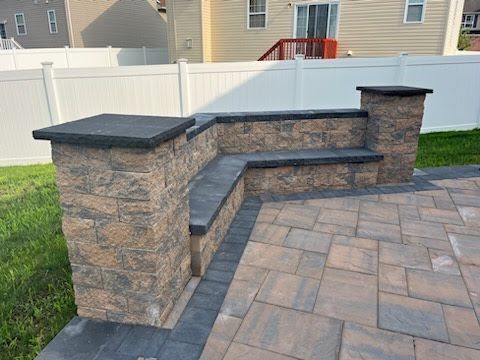 Residential projects including patio installations, fire pits, custom landscaping projects, walkways & more